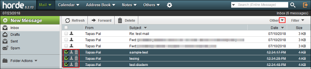 Deleting emails from Horde WebmailStep 1: Follow the steps to delete selected emails permanently1. Visit the URL http://<webmail.domain_name.com> and login into horde webmail.