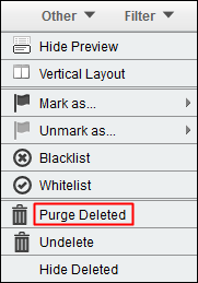 Now to delete them permanently, click on the arrow from the other option on the right menu. Now click on Purge Deleted to delete those emails permanently. A popup will inform that all the emails are successfully purged.
