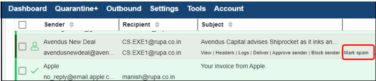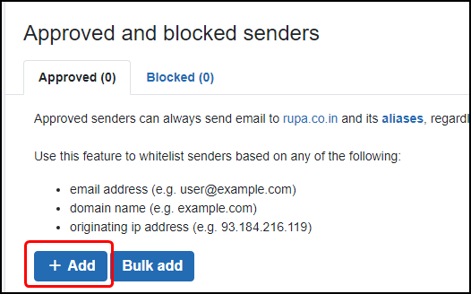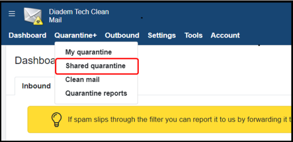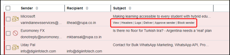 Diadem MXThunder Antispam Filter OverviewMxthunder is a premium cloud based antispam and antivirus solutions that works out of the box, If you have an existing subscription, please login at the below URL: Antispam URL: https://diademtech.mxsnap.com/User Name: yourdomain.com Shared QuarantineTo check all the Quarantine emails Quarantine > Shared Quarantine To manage the Quarantine emails Hover on the email subject to get the options for viewing, blocking and approving the sender ____________________________________________________________________________________________________________________________________________________________ Clean mailTo check all the Clean mail Quarantine > Clean mail On the email subject to get the options for viewing, blocking and approving the sender. _________________________________________________________________________________________________________________________________________________________________ WhiteList and BlackList SendersFor Approved sender need to click on Settings > Approved senders Now click on Add Enter the Email address or domain name and save it. ___________________________________________________________________________________________________________________________________________________ For Blocked sender click on Settings > Blocked senders Click on Add Input the Email address or domain name and click on Add blocked senders Spam TrainingTo mark any mail as a spam mail Quarantine > Clean Quarantine > click on Mark spam To clean the spam mail follow the steps below. Quarantine > Shared Quarantine > click on View
