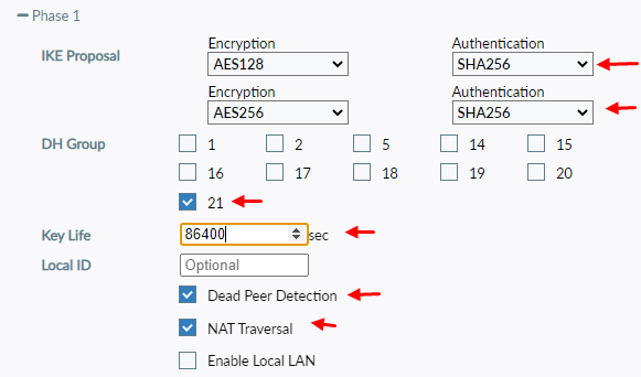 (Optional) FortiClient V7.x Manual Configuration ReviewReview the configuration manually to ensure that the parameters are configured correctly. Apply the configuration as per the following settings for FortiClient V7.x.