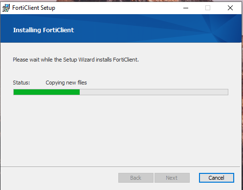 Step 04 : Please wait while the Setup Wizard Installs FortClient VPN.