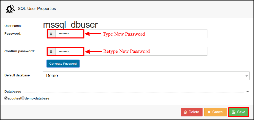 Steps to follow to change MSSQL database password in SolidCP
