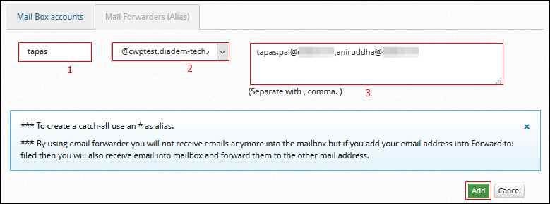 2. Go to Mail Forwarders tab and click on add new forwarders (Alias).